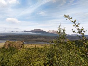 Whilst no gorge we encountered was as grand as the one we had visited yesterday, we continued to be humbled by the many gorges we passed and crossed on our final approach to Thórsmörk. The views were becoming much more familiar now, with many land features we’d seen or visited prior now viewable from a different perspective, as if we were now behind the film set looking at the audience space we used to inhabit. As we clambered up and down over green mounds, we noticed that there were now trees cropping up here and there and we realised just how much we’d missed being among them! Once we traversed our final river crossing; the Markarfljót, we found ourselves on the edge of a grand forest, which made us really feel like we were coming home to Thórsmörk. Before too long, we were on old familiar trails that we had walked and worked on, thoughts of our cosy volunteer hut filled with cakes and blankets spurring our tired bodies on.