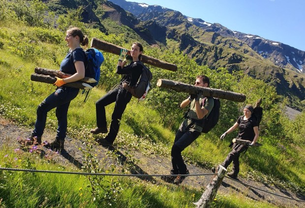Moving materials onto the Valáhnúkur trail (Anna Mariager)